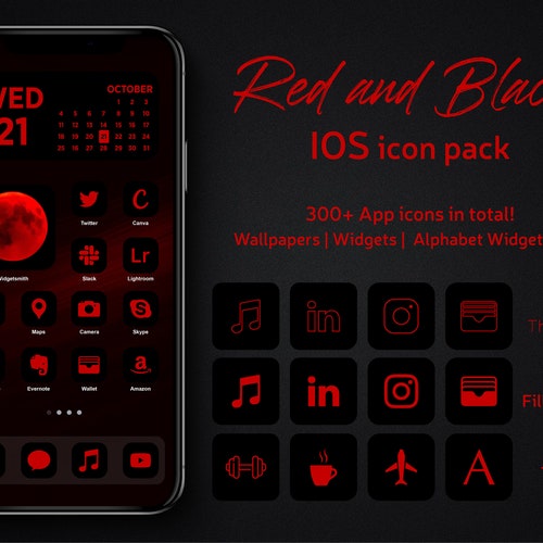 Red And Black App Icons Iphone Ios 16 And Ios 15 Theme Etsy
